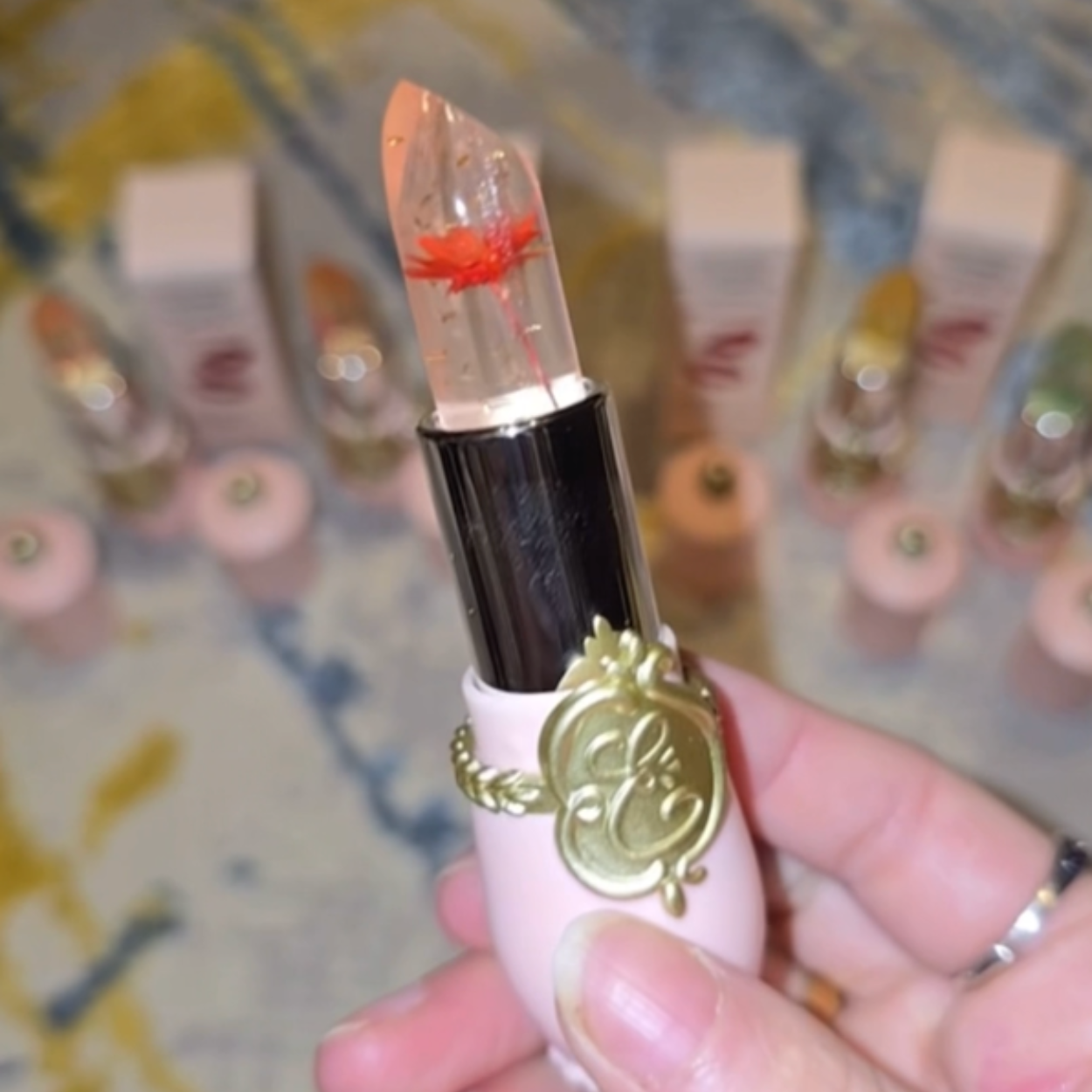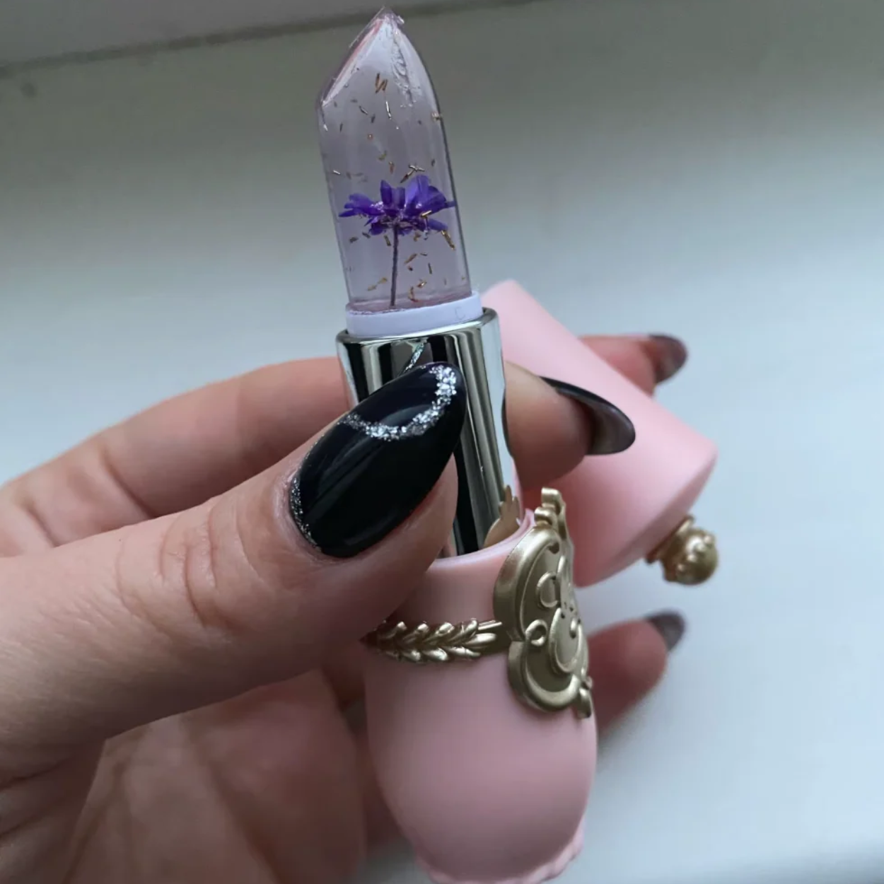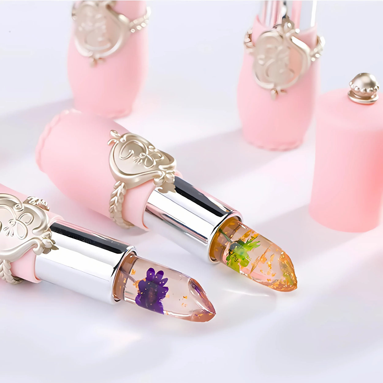 Design elegante – Perfetto come regalo! Rossetto trasparente con veri fiori all’interno: lusso in ogni dettaglio.